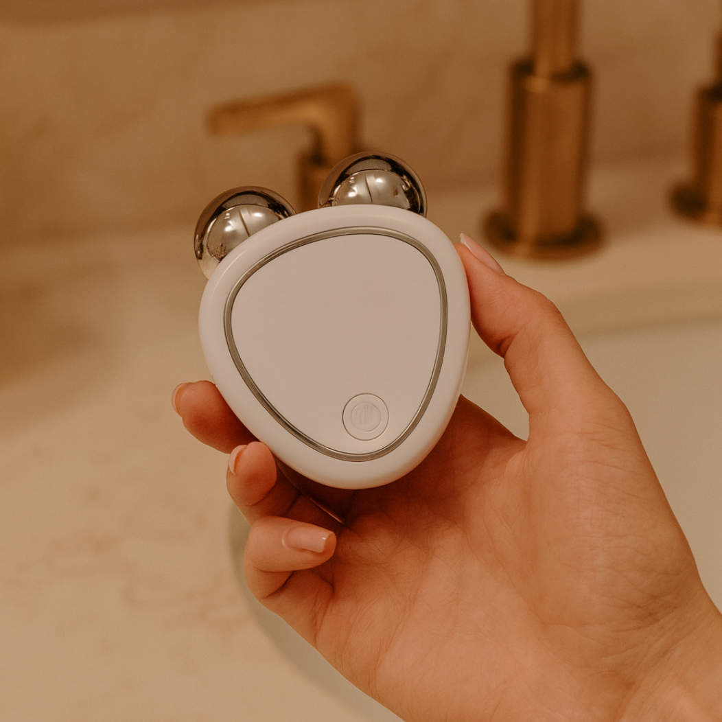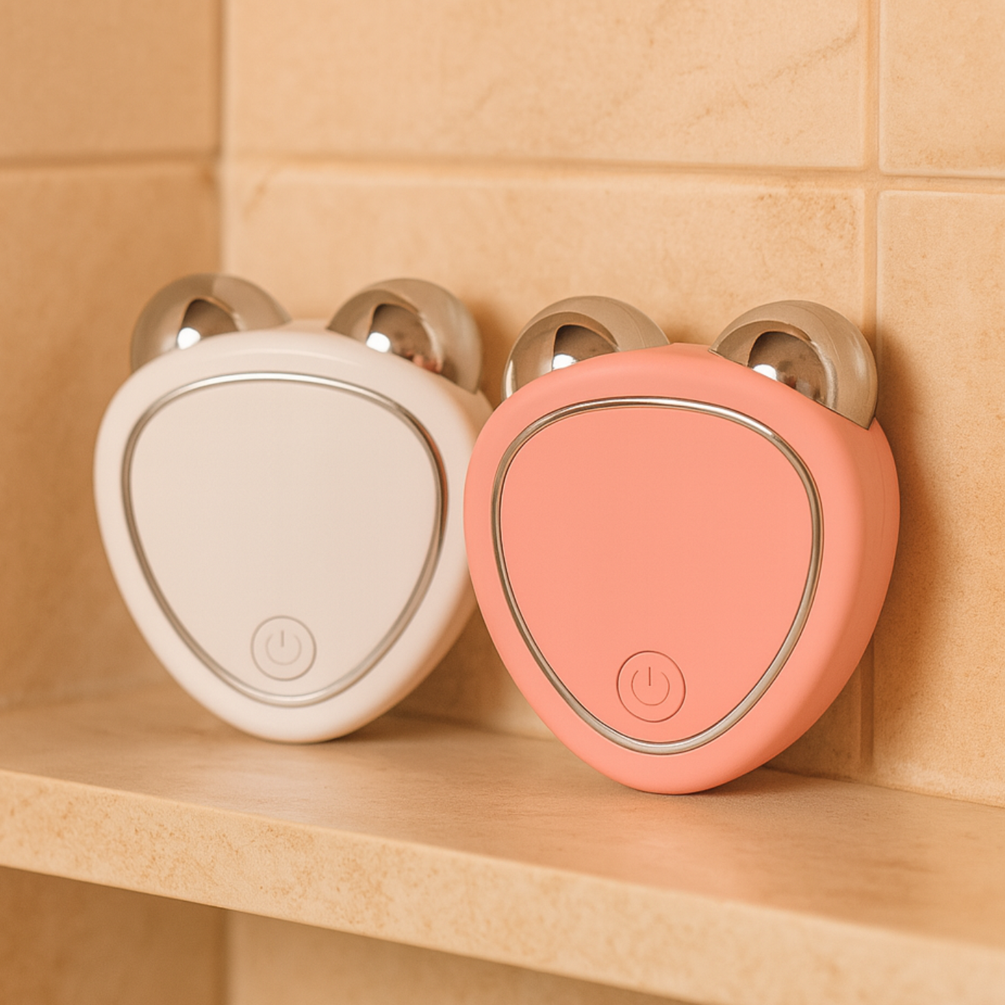 4. Glide & Lift – Move the rollers upward along jawline, cheeks, and forehead for 5–10 minutes.