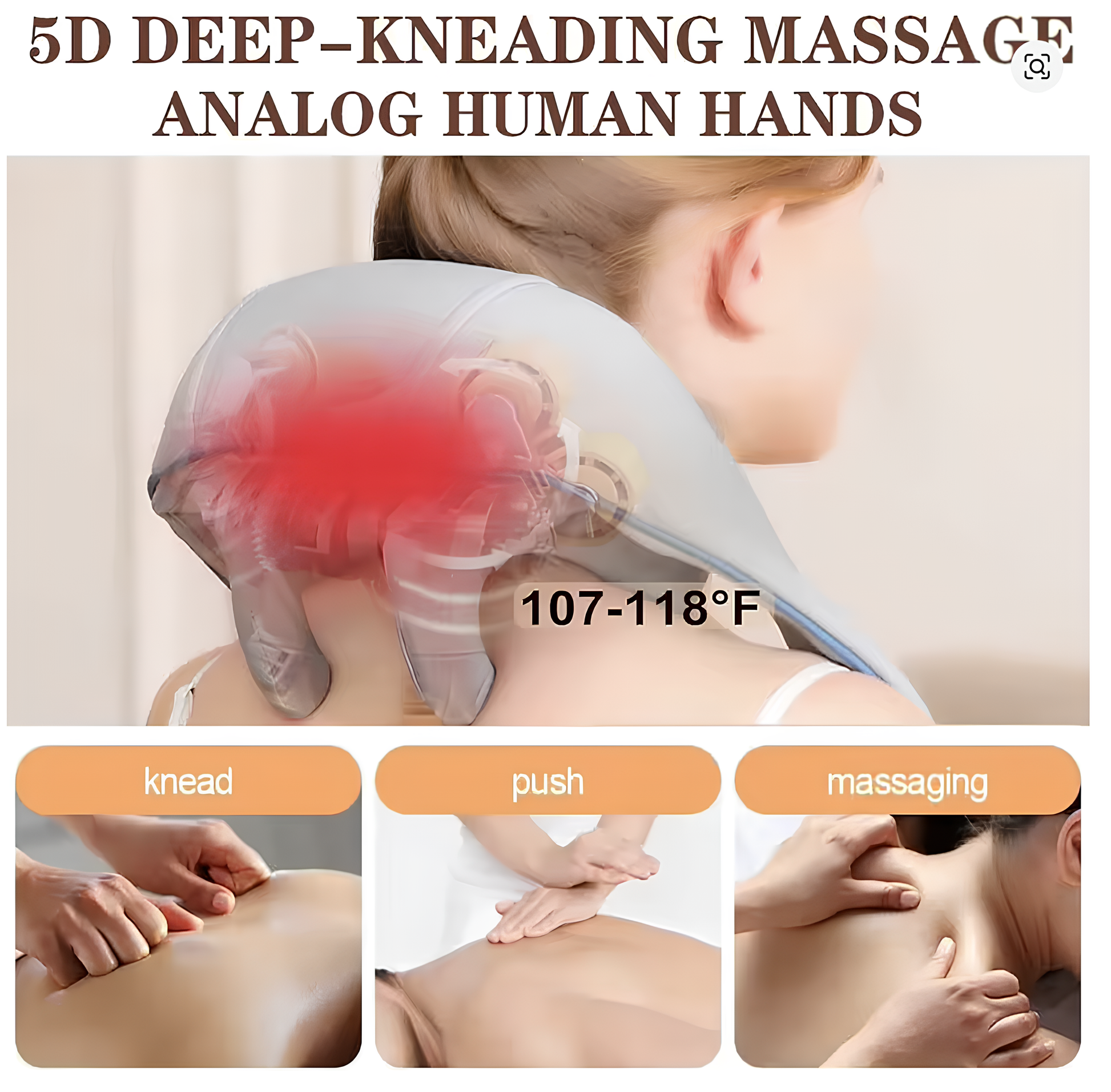 Multi-Area Use — While designed for the neck and shoulders, the massager can also be used on the upper back, lower back, or thighs for versatile comfort.